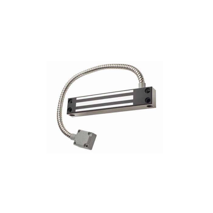 600 lb magnetic gate lock, stainless steel, weather-resistant, LED status indicator, field-switchable 12/24 VDC, automatic release, lifetime warranty.